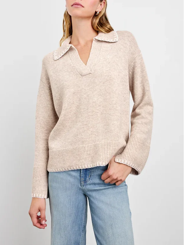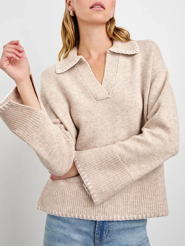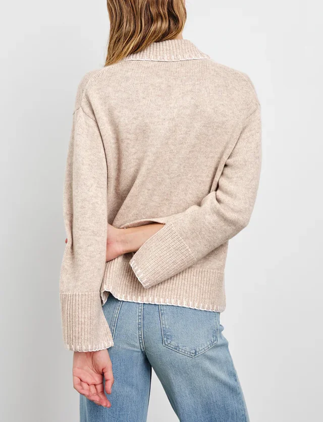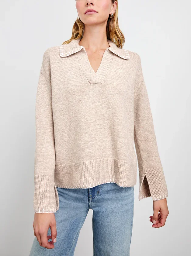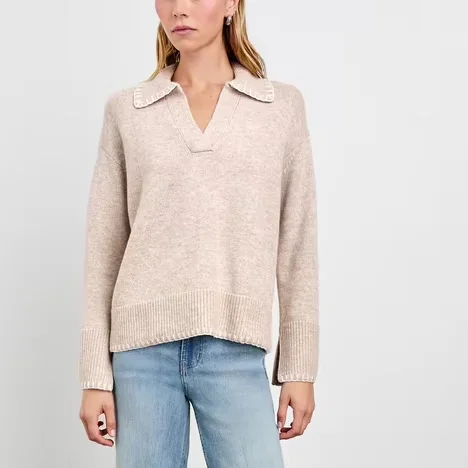 OEM/ODM Custom Women's Sweater Long Sleeve Half-placket Neckline Knit Pullover Wool-cashmere Loose Causal Top